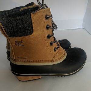Sorel Women’s Slimpack II Size 7 Lace Up Waterproof Duck Boots. These are brand new boots without the original box. Ankle shaft is approximately 6 inches, heel height is approximately 1 inch, and they are made with waterproof leather. Shipped with USPS Priority Mail.