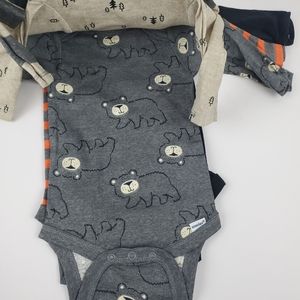 NWOT Gerber set of 5 long sleeve Onsies. 100% cotton. Size: 3-6M