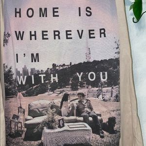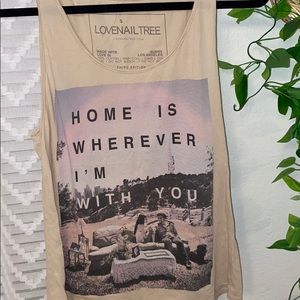Loose fitting graphic tank that reads “Home is wherever I’m with you”