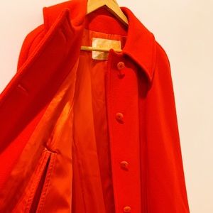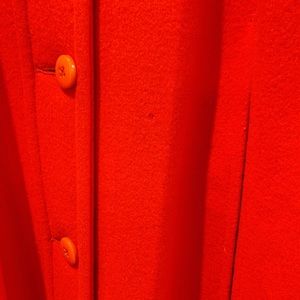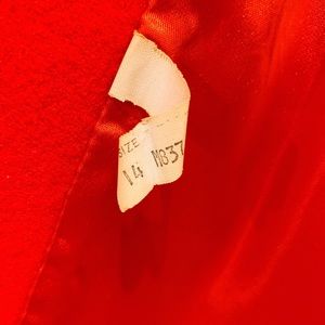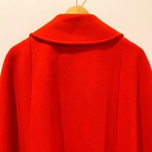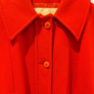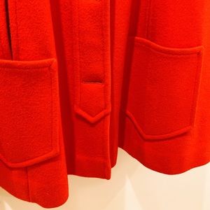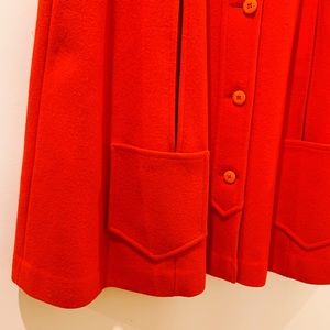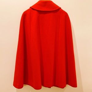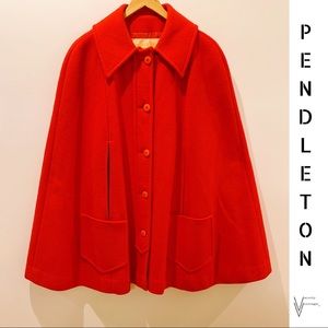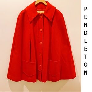 Vintage 70s Pendleton Virgin Wool Cape. This is absolutely gorgeous. Vibrant red with red lucite buttons. Has arm holes and two pockets on the front. Pointed collar, fully lined. Has a few tiny moth bites ( see pics). Great condition for the age. Just stunning. Size 14 fits like a M/L. Virgin Wool.