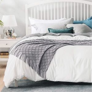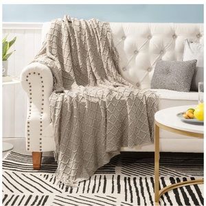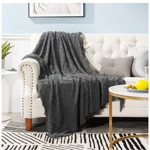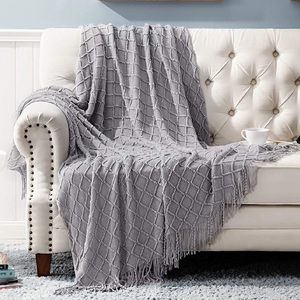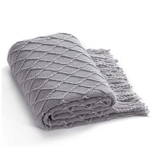 Grey Diamond Tassel Knit Throw Cozy Fringe Patterned Fall/Winter Dorm Blanket