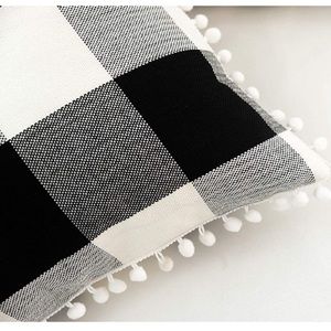 Classic Black/White Gingham Pompom Farmhouse Preppy Throw Pillow Cover Twin Set