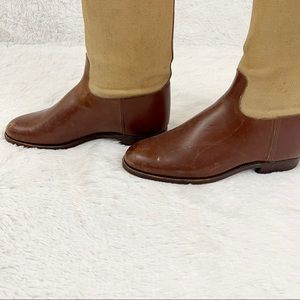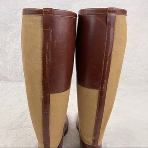 Florsheim equestrian tall riding boots vintage. Canvas and leather. Interior pull loops. Style 2281. Height 16”, heel 1”, calf width 5”. Scuffing on front of boots - see photos.