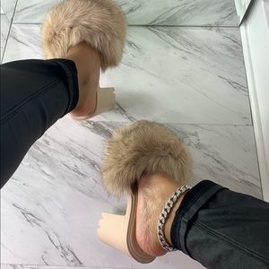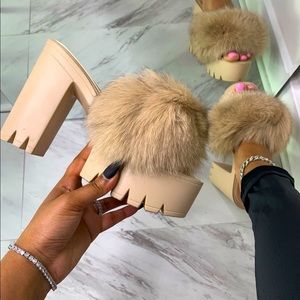 This platform chunky faux fur Lori slip on heel is to dye for! This platform heel features a fluffy fur strap and a thick chunky heel for a solid look and style. Pair these beauties with your favorite jeans or skirt!