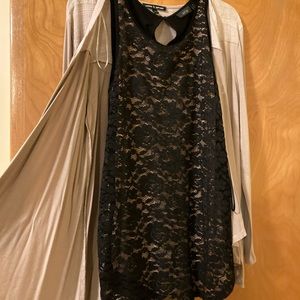 Cable & gauge M tan cardigan, very thin and a nice cut. Comes with a separate shell that is Black and Tan lace, Apt. 9 xs that fits like a M. Very stretchy and comfortable! Both pieces are sold as a set.