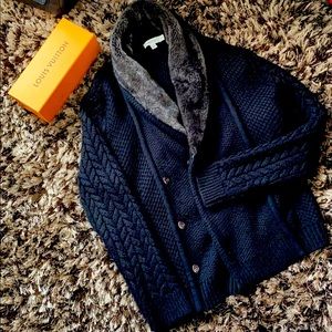 Cozy faux fur neck lined men’s sweater/Cardigan.