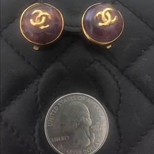 beautiful Chanel Logo Purple "Gripoix"Glass Earrings. ! Very lovely and Special piece. . NOTE that one of the earrings is missing the back plate which mentions Chanel and the rubber ear pad. (doesn't effect any wear possibility )!Please review the photos closely and ask any questions before purchasing. Thanks