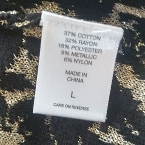 Beautiful gold shimmery cardigan! Difficult to capture the gold shimmer in photos, it's so much more beautiful in person! Regular length sleeve. V neck cardigan with gold detail buttons. Great condition, but pre-owned. No visible pulls or stains. Some normal signs of wear. Smoke and pet free home.