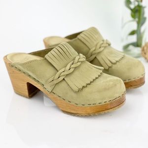 Sven Originals Kiltie Clogs Wood Platform Sole Tan