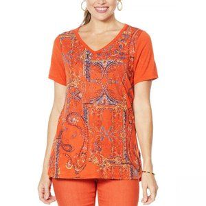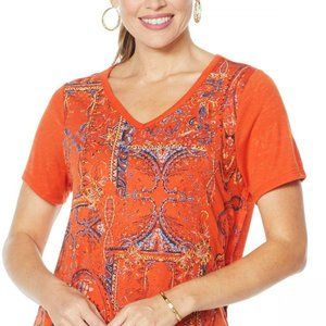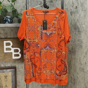 NWT DG2 Burnout Embellished Top XS Rust Paisley