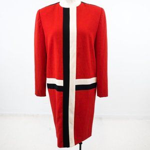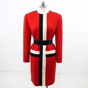 Vintage 80s 10 Wool Colorblock Stripe Dress Red