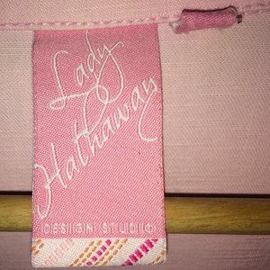 Very gently worn, in perfect condition! Gorgeous baby pink stretchy denim blazer back slit jacket. - Stretchy denim material - All buttons branded 'Lady Hathaway' - Two (2) usable front pockets - Back slit design - 98% Cotton 2% Spandex - Machine wash cold SIZE: Medium COLOUR: Baby Pink / Light Pink
