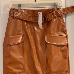 Topshop coated canvas knee length skirt with belt and pockets. Back zip. NWT.