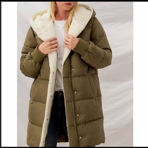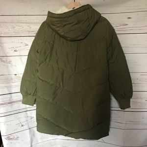 Love Tree Hooded Long Puffy Jacket Olive Green