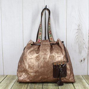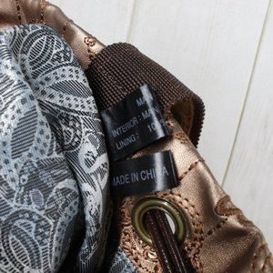 Original by Sharif Gold Vegan Leather Embroidered Drawstring Tote Shoulder Bag