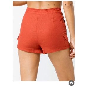 New with tags/ Sky And Sparrow Linen Utility shorts. Linen blend shorts feature a drawstring waist. Utility flap pockets at the sides. Slant hand pockets. Button waist. Zip fly. Approx. inseam: 2.5". 55% linen/45% rayon. Machine wash. Imported.