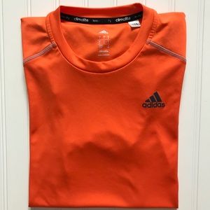 ADIDAS Orange & Grey Short Sleeve Running Shirt! Climalite “Keeps You Dry” Technology! 100% Polyester. Vented Arms! Excellent Condition! NOT JUST FOR RUNNING!