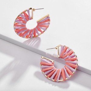 Anthropologie x BaubleBar Gianella Pink White Raffia Hoop Earrings