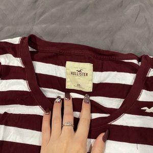 Very cute only worn once maroon and white stripe Hollister long sleeve short size XS. Comes from a smoke free home