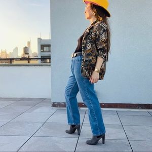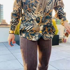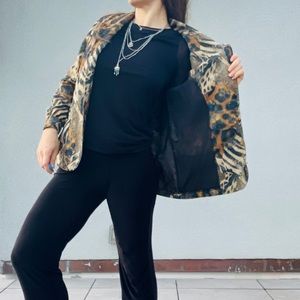 Vintage Jordana Jungle Animal Print Gold Buttons Fax Fur Blazer