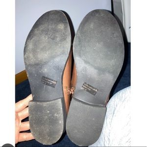 Chestnut brown faux leather over the knee riding boot. Hardly any wear on the soles, only worn once. In excellent condition. Bought on Nordstrom rack. Sold out online. From wild diva lounge. Zipper from mid calf to ankle on inside of leg. No scuffs on the actually leather part of the boot
