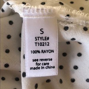 Beautiful women’s or teen blouse. Button down. White buttons. Polka dot white background black dots. Work attire or casual. Comfortable for hot weather. Cool material.
