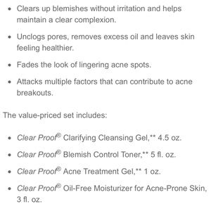 Clears up blemishes without irritation and helps maintain a clear complexion.