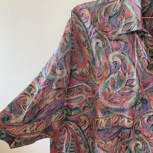 The grooviest pattern in amazing vintage condition, tag looks like late 80s early 90s. No flaws. Marked Men’s L and fits like XL.
