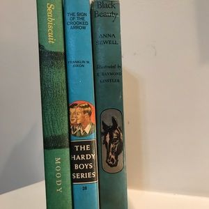 Ralph Moody 1970 Hardy Boys Sign of the Crooked Arrow 1963 Black Beauty. First couple of pages have been torn out