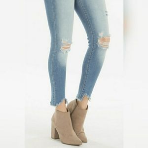 Kancan light wash ankle skinny denim jeans.