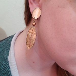 Oval Wire Wrapped Dangle Clip On Earrings