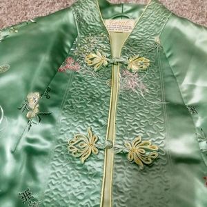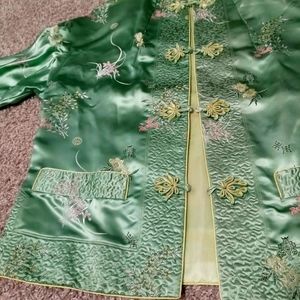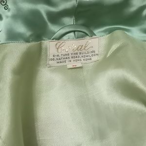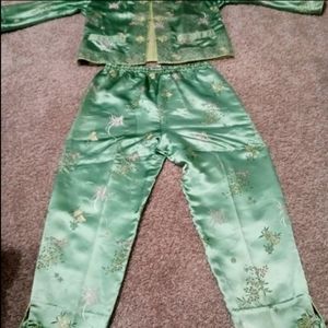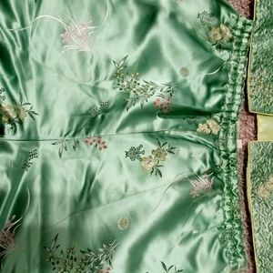 Seafoam green, real silk, size M, original top & bottom. No tears/fraying or stains. Soft pastel pink flower design