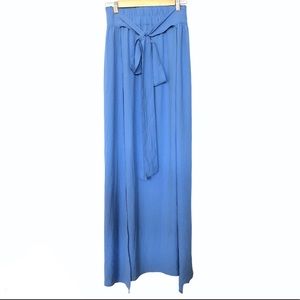 Features: Tie Front, High Waist, Lightly Creped Material, Maxi Length, Cami Ties Around Neck, Flowy, Sexy, Feminine