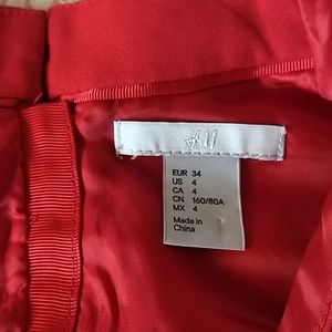 GUC H&M Festive Pencil Dress. Bright red without being shiny, deep V, and ruched front. Invisible back zipper, two buttons at top of neck (spare button included). Lightly worn, lots of life left. Machine washable! See pics for measurements, fabric content, and details.