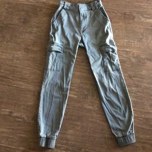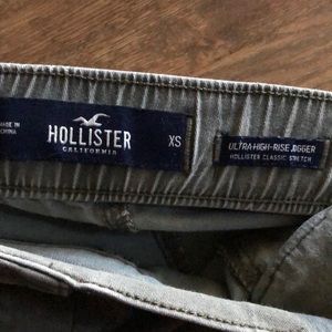 Hollister. Size XS. Ultra High-Rise Jogger. Army Green. Classic Stretch Wasteband. Buttons and Zipper intact. Front pocket and side pocket. Sinched bottom. Good used condition.