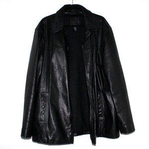 Survive the cold in style with this sick leather coat. Vintage from the 90s, it's made of buttery leather and cut in an edgy oversized silhouette, perfect for making a bold statement. Layer this over chunky knits or a simple black T-shirt and stay warm all winter. This piece is heavy and thicc--it's the real deal. They say a leather jacket only gets better with age, and this beauty proves it. It even features a cool velcro cellphone pocket--a blast from the past! Fully lined. Tons of pockets!