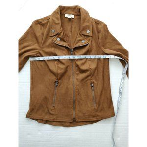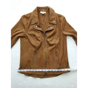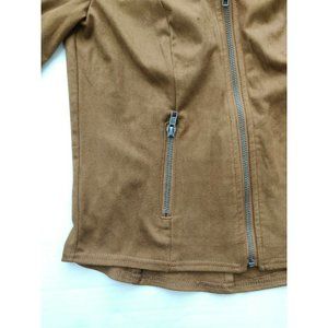 Style & Co Women's Moto Jacket Petite Small PS Brown Faux Suede Zip Up