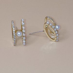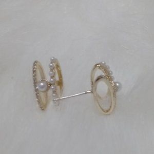Gold Pearl & Diamond Stud Earring