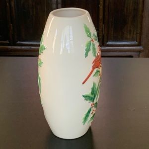 This is a beautiful vintage holiday vase with raised pattern of cardinals, holly and berries. Excellent condition without any chips, cracks or scratches. Comes from a smoke free/pet free home.