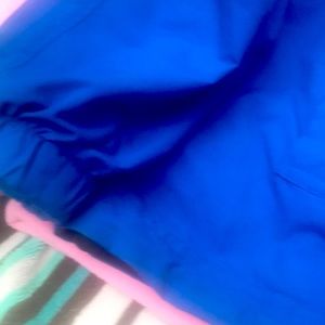 LNC condition no stains black blue reversible 24” ”b 26”w 31”. Sleeve 3” collar 28” length goes to my hips 5’2” one side water repellent solid & other side fleece lined black and blue other side warm coat reversible