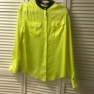 Neon and Navy C Wonder Silk Button Down Blouse