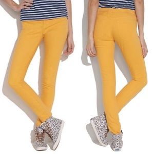 Great pair of Madewell Skinny Skinny ankle jeans. In a yellow honeysuckle color. Mustard yellow color.
