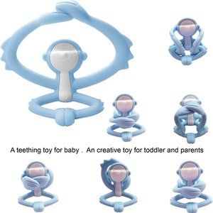 ¡ï CUTE MONKEY DESIGN: Made from 100% food grade silicone, the adorable monkey design is super soft on sore gums and budding teeth. Extremely flexible to allow babies to learn and explore,. it can sit upright and it's hugging arms can be positioned in dozens of ways for creativity that is fun for babies and toddlers too!