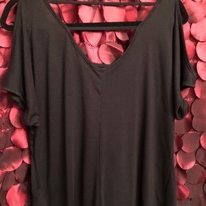 Black with gold embellishments. Perfect for the holidays. Cold shoulder