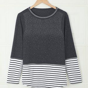JUST IN! GRAY Rhinestone beaded Long Sleeve Top