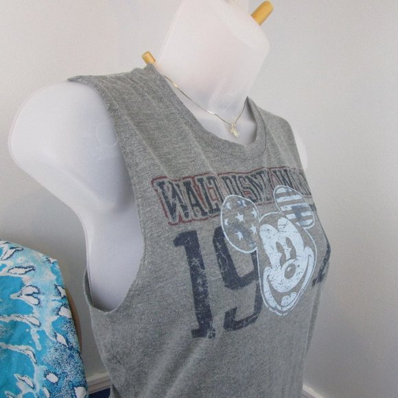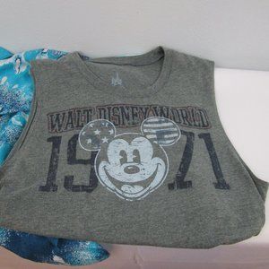 Authentic Disney Parks heather gray tank top, Mickey/1971. Walt Disney World opened for the public on October 1st, 1971. In very good gently used condition, some piling from washing near the underarms, no other flaws found. Sadly outgrown.