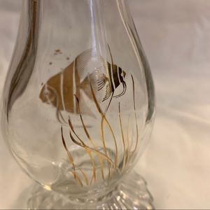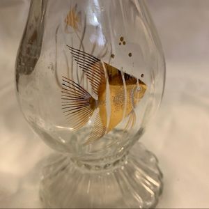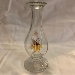 Glass vase from Avon. It has a bigger gold angelfish on one side and a smaller one on the other.