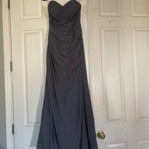 Flattering dress for many occasions. This dress makes your waist look tiny! It is strapless but has snaps to add straps if you’d prefer. It also has a silicone liner to help keep the dress stay in place. I only wore it once. Pictures are of me wearing it in my friend’s wedding.