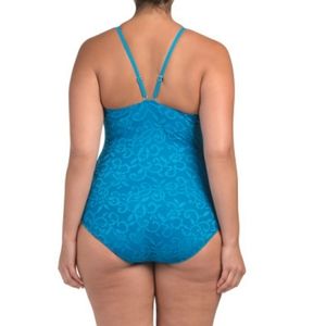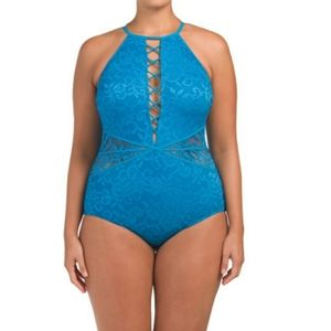 Profile by Gottex 22W Blue Plus Size Shalimar Lace High Neck Swimsuit One Piece. Please see photos for specifics.