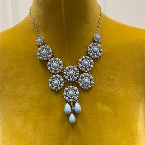 Silver statement necklace with light blue stones and clear crystals. Adjustable from 17”-18”. As is.